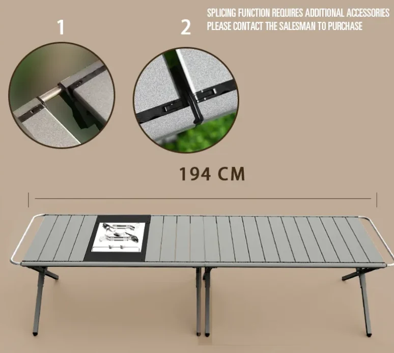 ቀላል ክብደት ያለው የብዙ ዝርዝር እንደ ፍላጎቶችዎ መሠረት ኢ.ሲ.ቲ. ለካምፕ, ባርበኪኖች, ከቤት ውጭ ምግብ እና ሌሎችም ፍጹም. የጠረጴዛው ጎን ምግቦችን እና ዕቃዎችን ለማስያዝ ሊያገለግል ይችላል