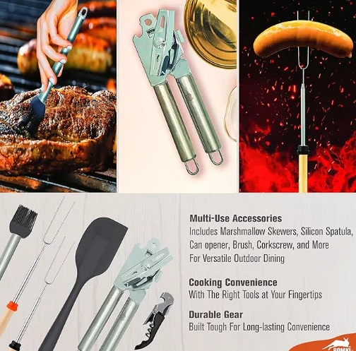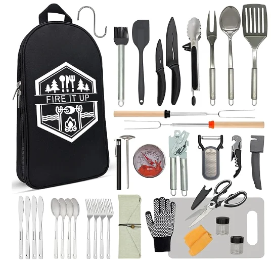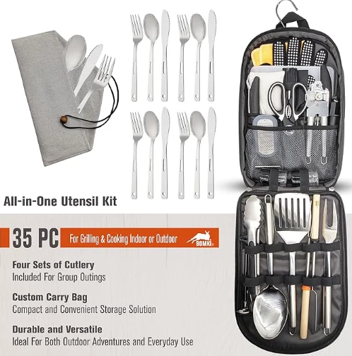ከቤት ውጭ ካምፕ ካምፕ ማከማቻ የማከማቻ ቦርሳ ይህ 35 ፒ ፒ ፒ ካምፖች የማብሰያ ዕቃዎች ስብስብ ለቤት ውጭ የማብሰያ ፍላጎቶችዎ የተሟላ መፍትሔ ነው. በብዕምሮ ማጫዎቻዎች የማብሰያ ቦታን እና የካምፕ ዕቃዎችን በማብሰል የተሸጎጠ የካምፕ ዕቃ ማጠራቀሚያ ስብስብ, ሁሉም ተጨማሪ ክፍሎች እና ሁለት የኋላ ኪስ ያላቸው. ስብስብ, ሁሉንም ካምፖች የማብሰያ ማዳምደጃ አስፈላጊነት ለማሟላት የተቀየሰ ነው, ከካምፕዎ ማርሽ ውስጥ አስፈላጊ ያልሆነ ተጨማሪ ነው