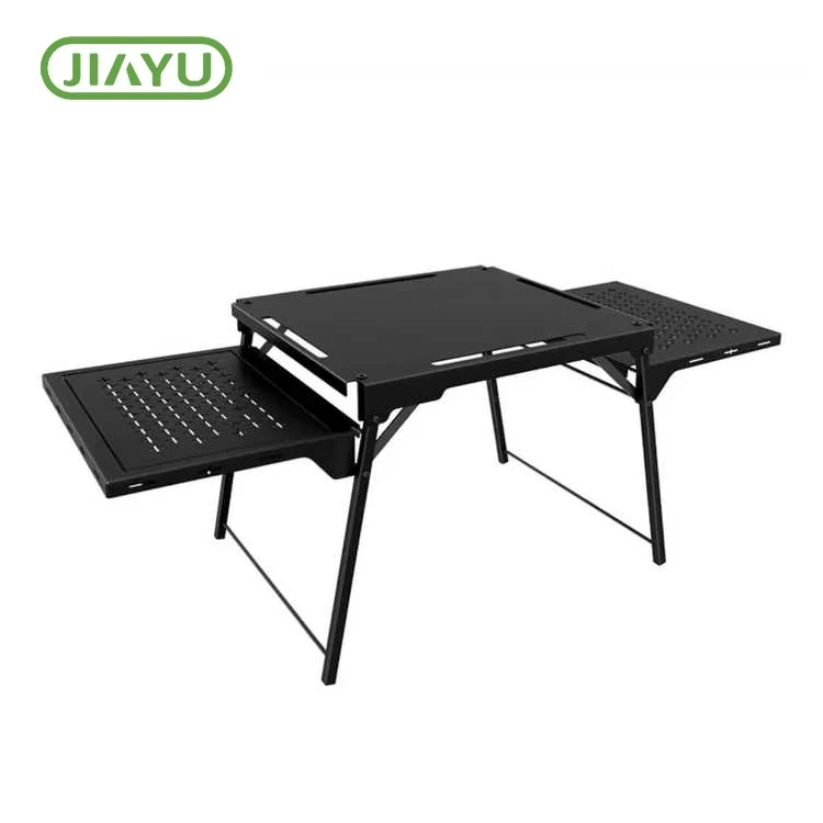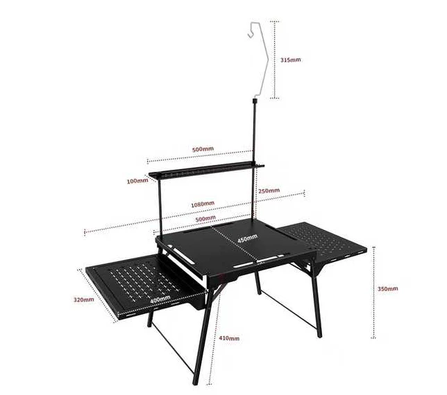 ተንቀሳቃሽ የአሉሚኒየም-ብረት ብረት ማጠፊያ ጠረጴዛ, የመመገቢያ መድረክ ሁሉንም ዓይነት የጠረጴዛ, የመካከለኛ እና የታችኛው ክፍሎች, ሁሉንም ዓይነት የጠረጴዛ, ምግብ እና ኮንስትራክሽን ለማከማቸት በቂ ቦታ ያለው የላይኛው, የመካከለኛ እና ዝቅተኛ ክፍሎች የተዋቀረ ነው.