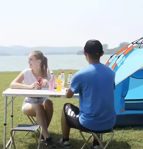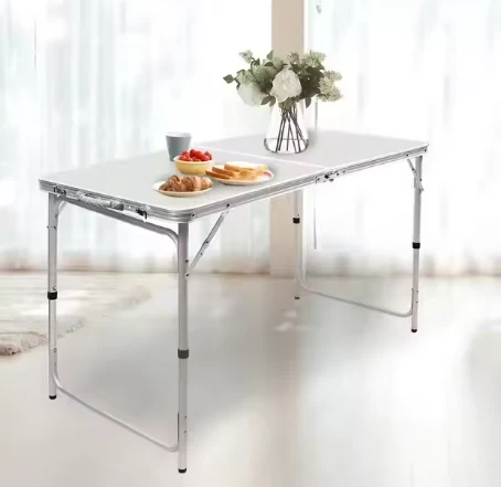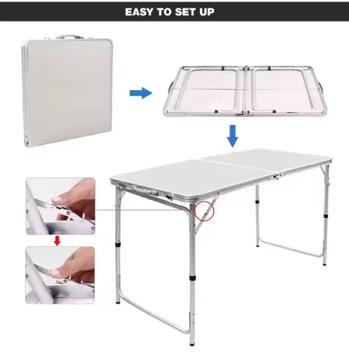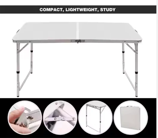 ተንቀሳቃሽ ማጠፊያ የአሉሚኒየም ጠረጴዛ, የቤት ውስጥ ጠረጴዛ, የባህር ዳርቻ, ቱሪዝም, የስፖርት ዝግጅቶች የሚያገለግሉ, ወደ ውጭ እና ከአሳ ማጥመድ ያገለግላሉ.