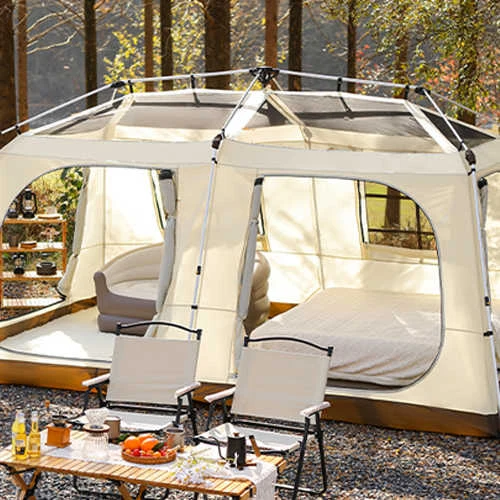 የውሃ መከላከያ ድንኳኖች. የእንቆቅልሽ እና የነፋስ ገመዶቹን በደረጃ ማስተካከልዎን ያረጋግጡ. ድንኳኑ በዝናብ ቀናት ሙሉ በሙሉ ይደርቃል. ለቤት ውጭ ካምፕ, በእግር ጉዞ, በአየር ሁኔታ ውስጥ ማጥመድ, ማጥመድ.