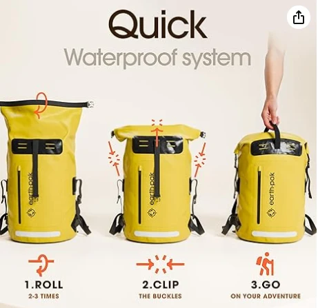 በውስጥም ሆነ በከረጢቱ ውስጥ ባለው የኪስ ቦርሳ ውስጥ የሚደርሰው ደረቅ የኋላ ቦርሳ. በውጫዊው ውስጥ አንድ ትልቅ ስፕሊት-ዚፕ ዚፕ, እና አብሮ የተሰራው የ Zipheed jiockor, የመልሶ ማከማቻ, እና የቁልፍ መዘጋት ቀለል ባለ ጊዜ ውስጥ ለቀላል የተሠራ እና ቀላል መዝጊያ እና ቀላል የደመወዝ ቀለል ባለ ጊዜ ላይ. ከሁለቱም የትከሻ ገመድ እና mole ስርዓት ማቋረጫ ጋር ተመጣጣኝ ዲ-ቀለበቶች ሁለቱም ጀልባዎች ወይም ብስክሌት መንዳት ላይ ቼክ ነጥቦችን ያቀርባሉ.